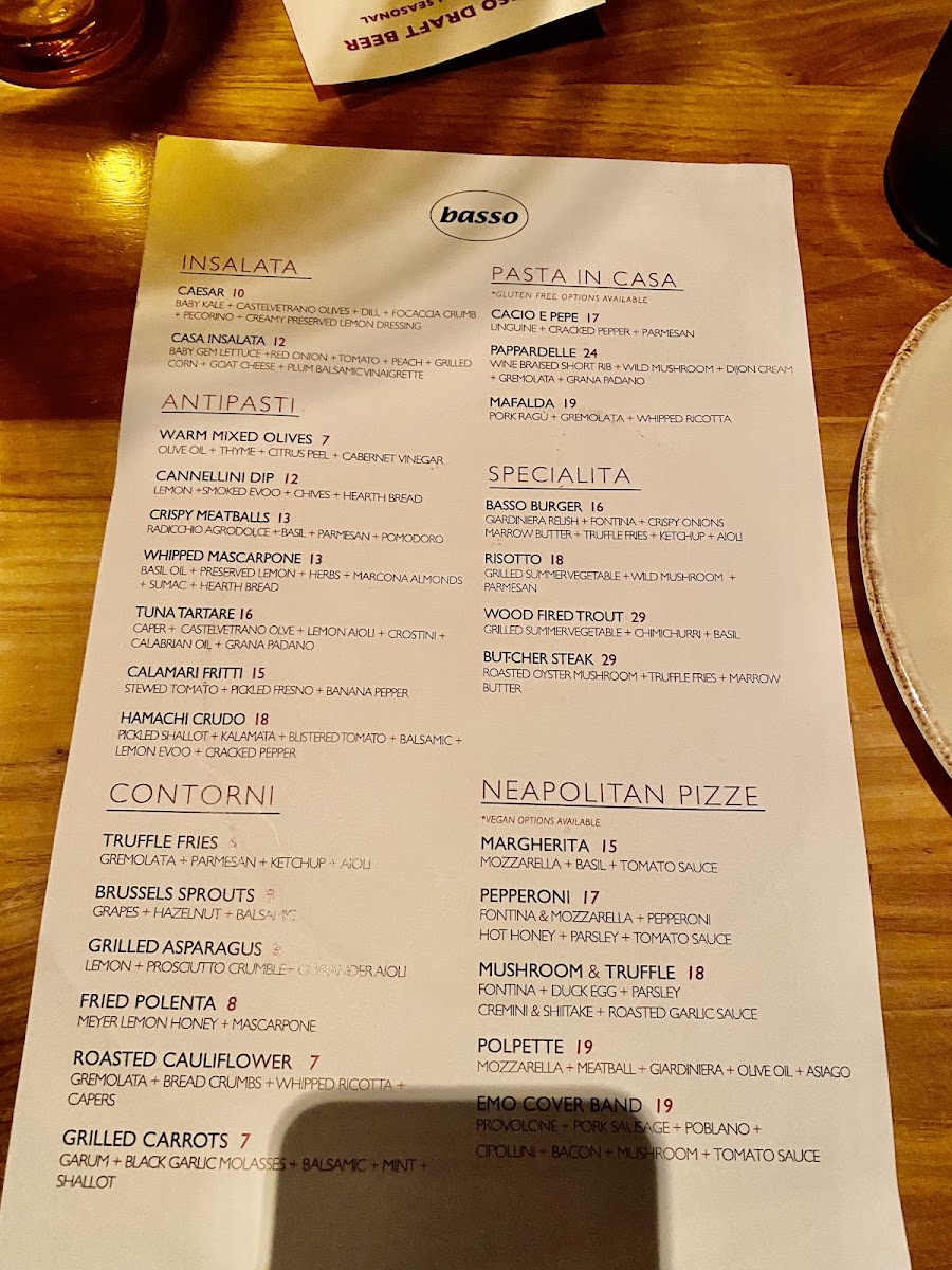 Basso offers a menu that reflects a commitment to high-quality ingredients and innovative dishes. Kick off your culinary adventure with their irresistible Truffle Fries—crispy, golden, and drizzled with a touch of truffle oil that elevates your taste buds. For a more savory choice, the Crispy Meatballs are a must-try, falling apart with each bite and bursting with flavor. Don’t miss out on the fantastic Chicken Wings 'Fra Diavolo', which pack a spicy punch sure to satisfy any craving for heat. If pizza is more your style, their Pepperoni & Hot Honey Pizza offers a delightful blend of spicy and sweet that is simply unforgettable.
